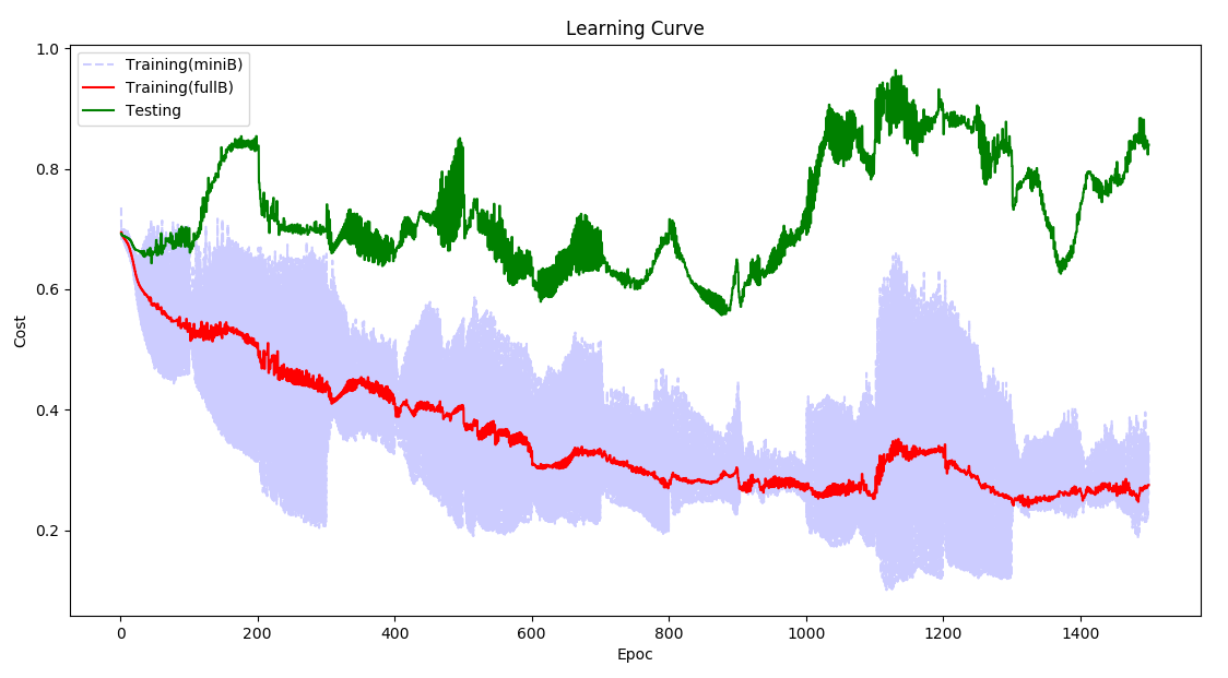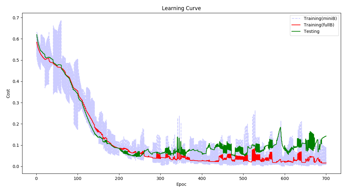 printCostAt =100, AdamOpt=True,B1=0.9,B2=0.99, lambd=0,keepProb =[1.0])