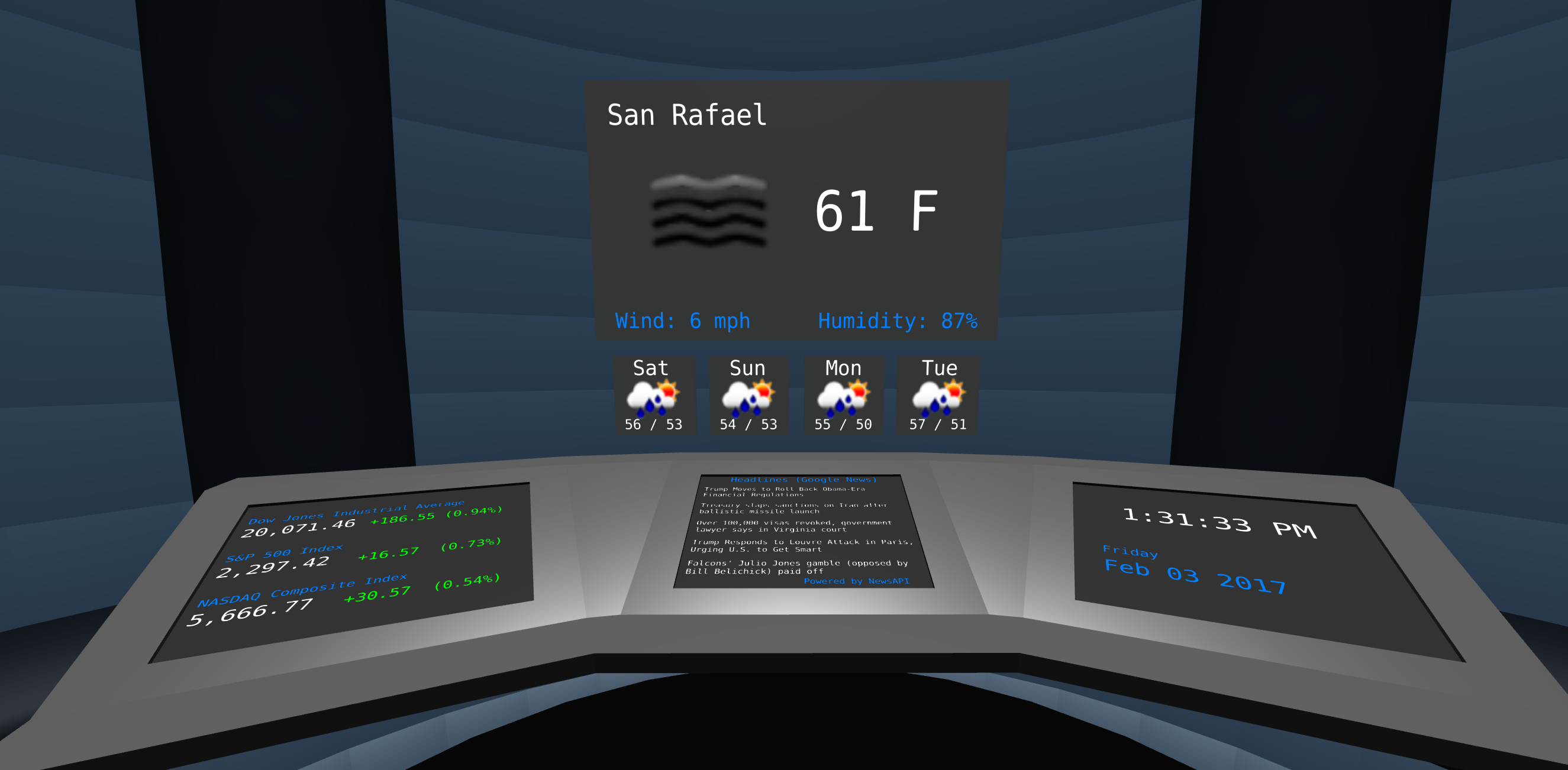 Dashboard VR - Dashboard VR is a WebVR experience that displays real time local information to the user. By @valcourgames.