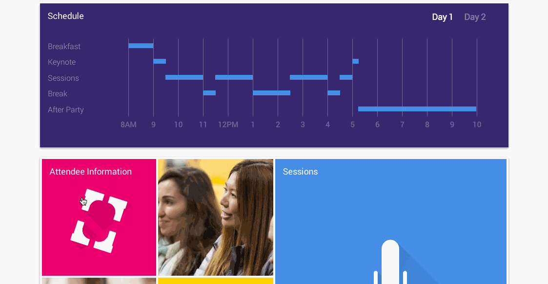 It was cool to hear Paul Lewis talk about designing a real site (the Chrome Dev Summit site itself). I think we’ve all seen some “material design” stuff by now, like expanding regions. But it’s mostly on mobile apps. It’s neat to see it working here in responsive design.