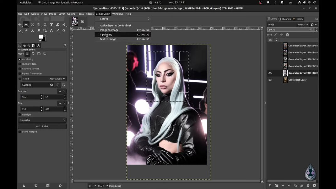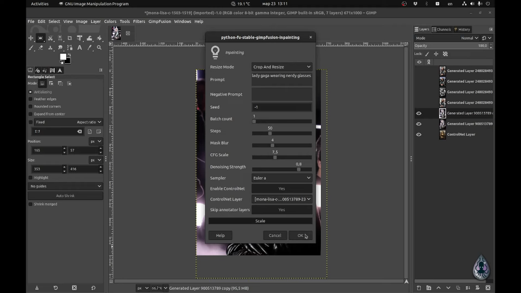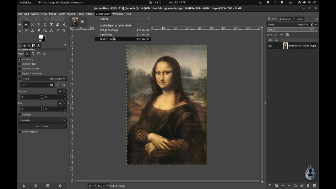 chmod +x /stable_gimpfusion.py - Restart Gimp, and you will see a new AI menu item