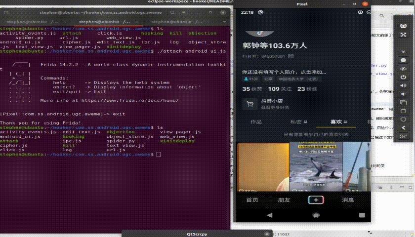 手机保证root,无需任何手动启动frida-server等一切配置,hooker会帮你搞定一切。x86架构的模拟器不兼容