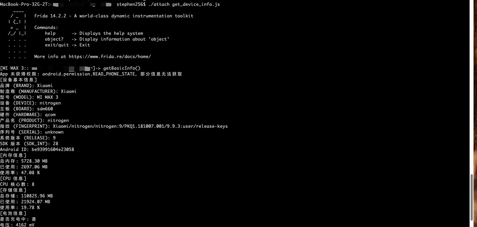 推荐命令:attach get_device_info.js