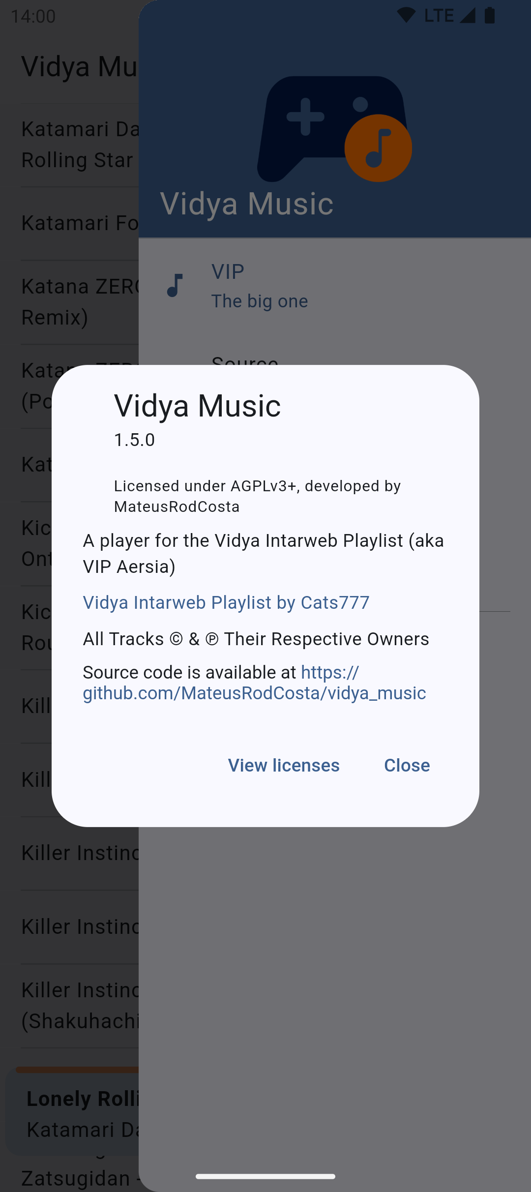 Vidya Music A Flutter player for the Vidya Intarweb Playlist (aka VIP Aersia). Licensed under AGPLv3-or-later. Or download the latest APK from the Releases Section. Screenshots