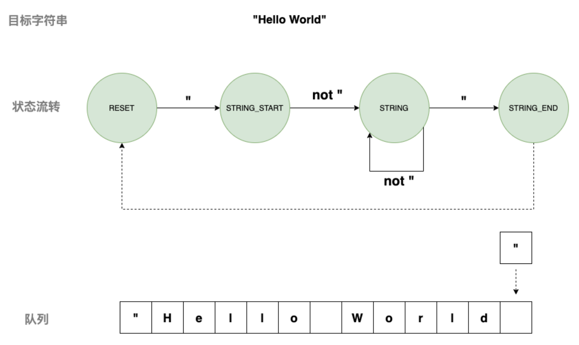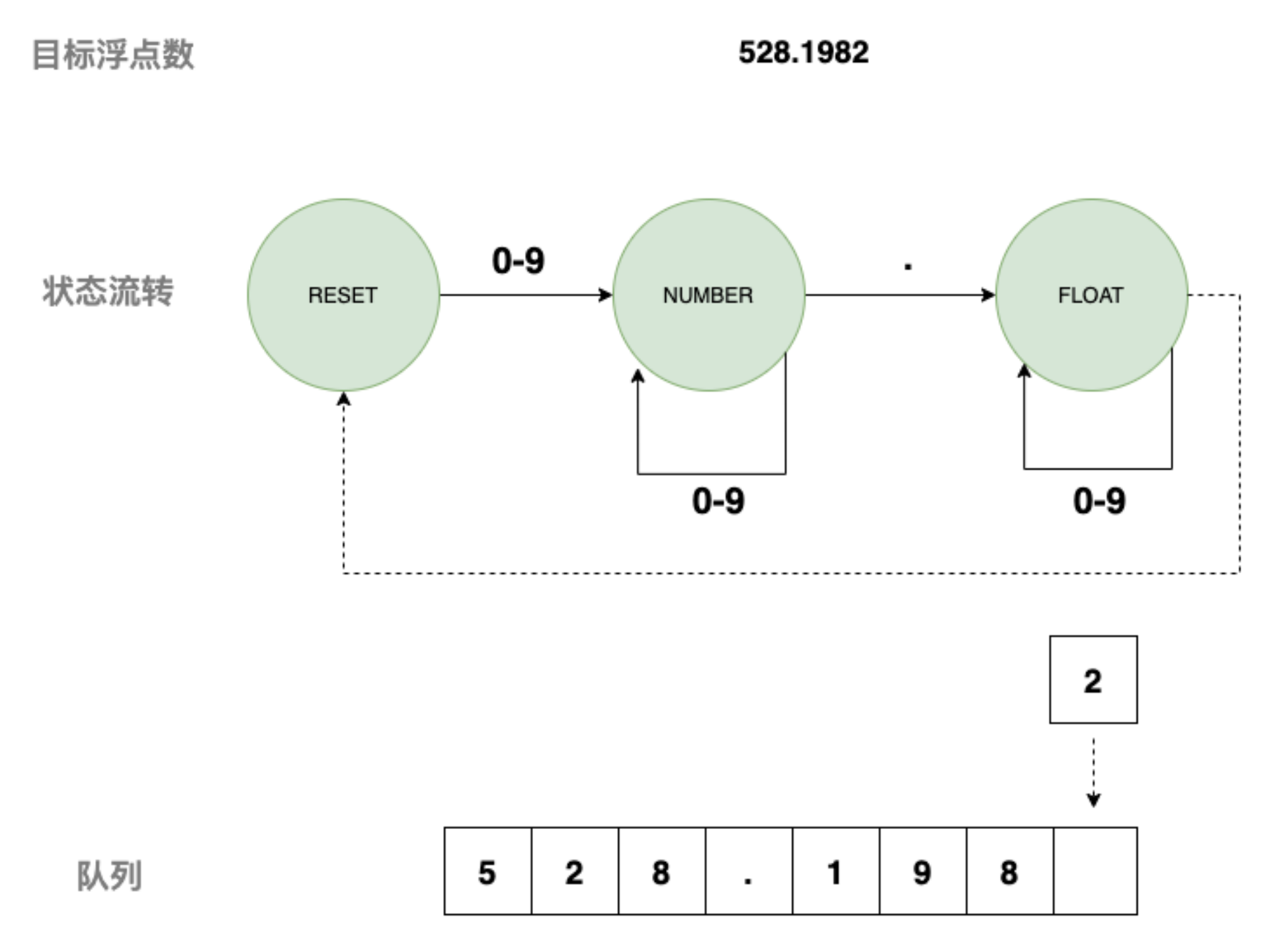 - 再定义状态转移条件 :如当前状态是初始状态,遇到数字则转移至数字状态,遇到符号则转移至符号状态