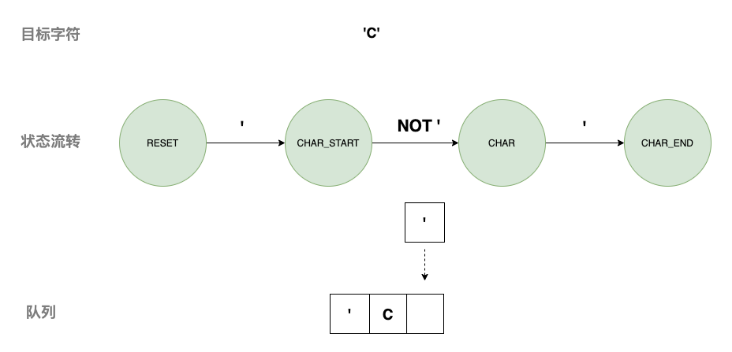 // 不匹配则生成token,并转移至初始状态,开始重新匹配