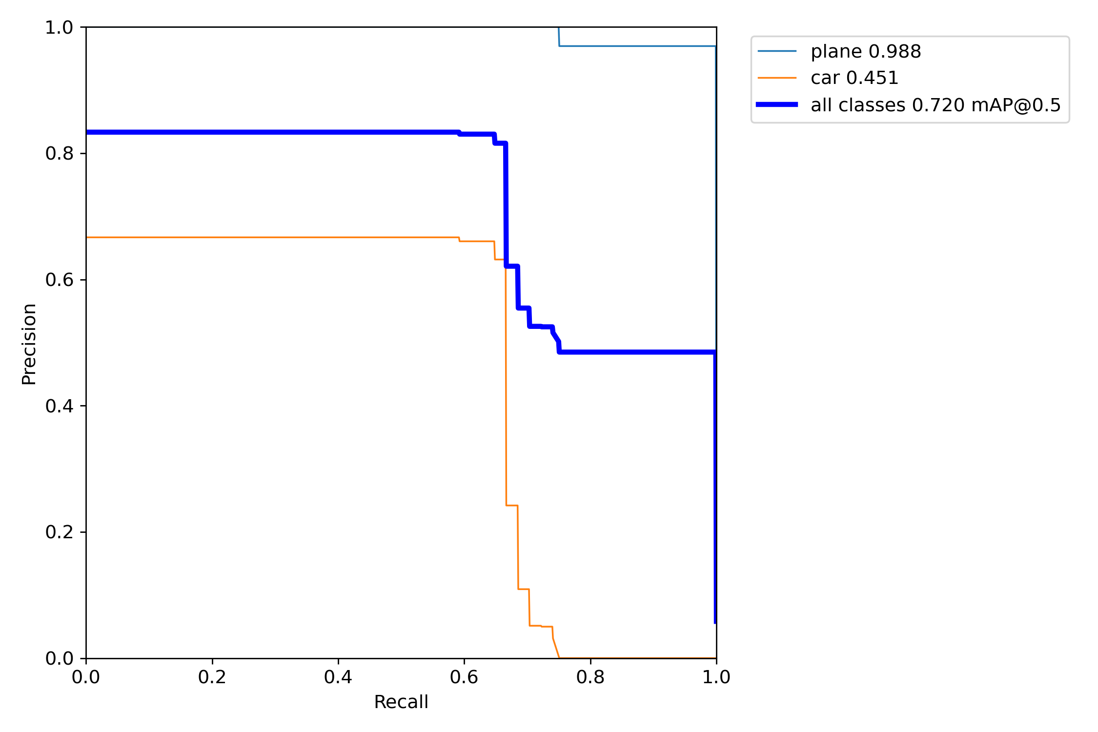$ python rotate_train.py --weights rotate-yolov5s-ucas.pt --cfg rotate_yolov5s_ucas.yaml \ --data rotate_ucas.yaml --hyp hyp.ucas.yaml --img-size 1024 \ --epochs 3 --batch-size 12 --noautoanchor --rotate --cache - Performance