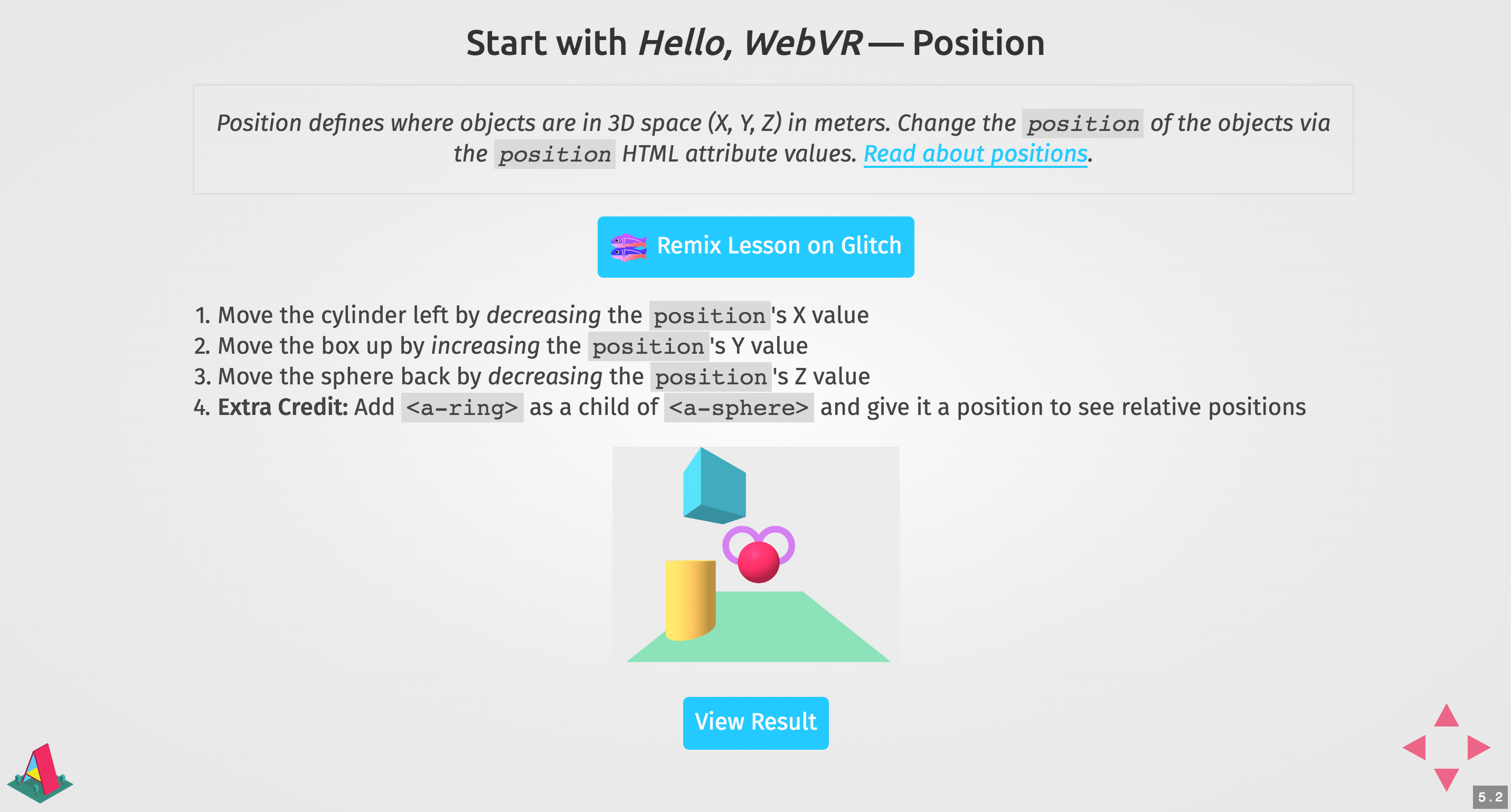 Interactive workshop and lessons for learning A-Frame and WebVR. Based around Glitch.