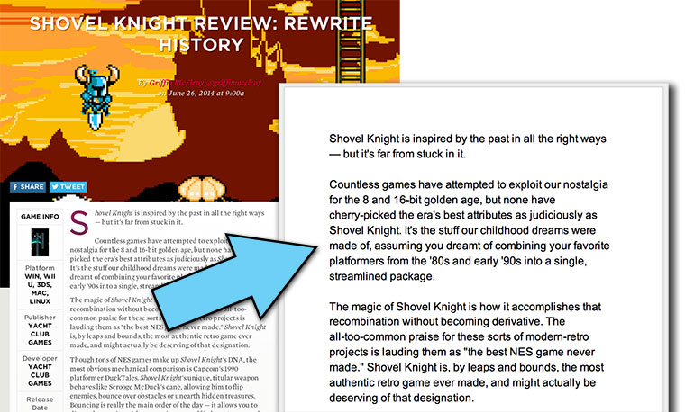curl -s "https://www.polygon.com/2014/6/26/5842180/shovel-knight-review-pc-3ds-wii-u" | unfluff | jq -r .text