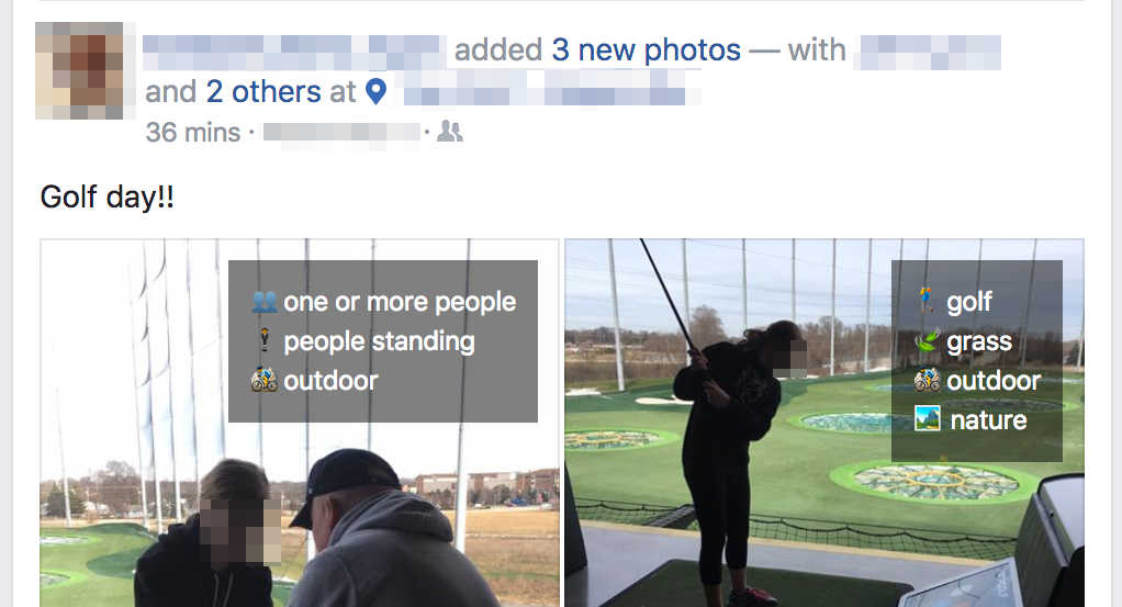 Since April 2016, Facebook has been automatically adding alt tags to images
