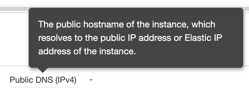 - It will take less than a minute for your instance to be up. You'll see a Public DNS address with the hostname of your instance: