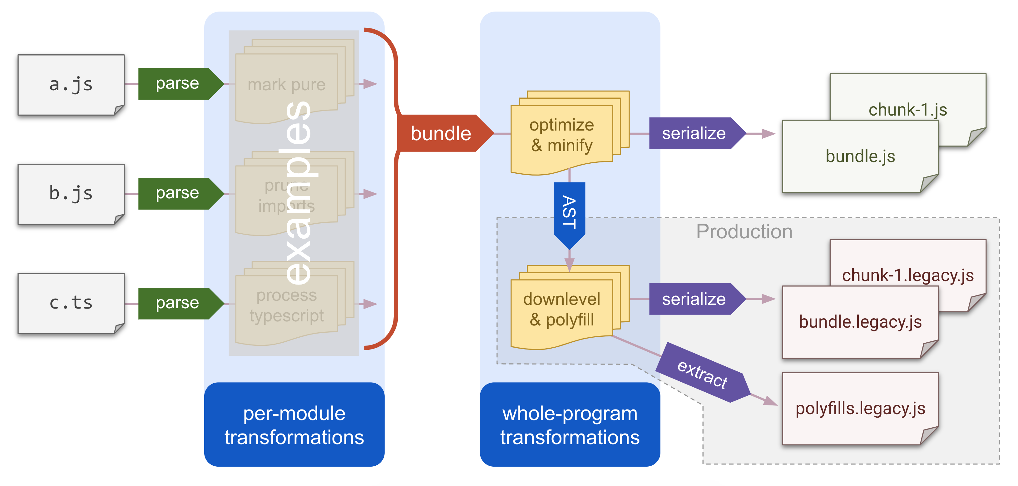 - Compiles bundles for modern browsers (90%) and legacy browsers (10%)