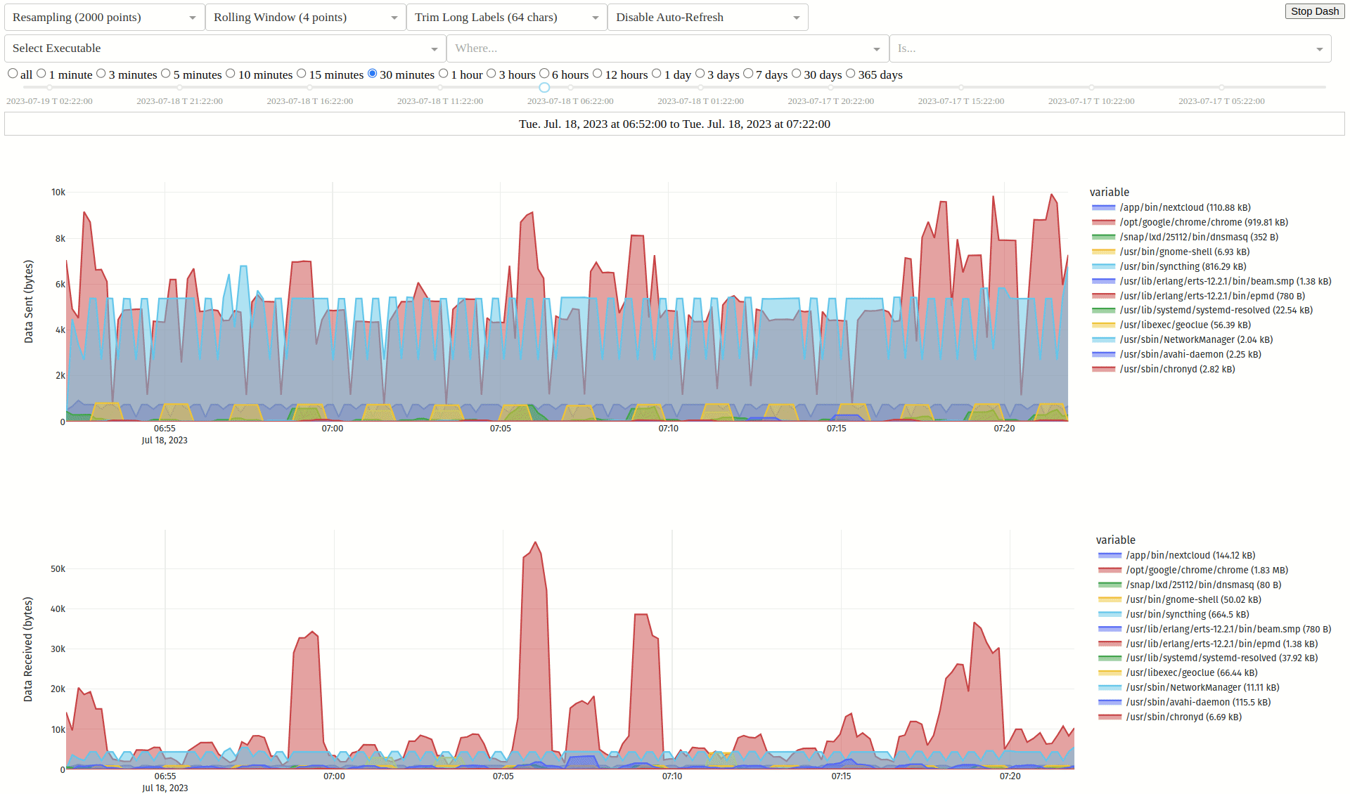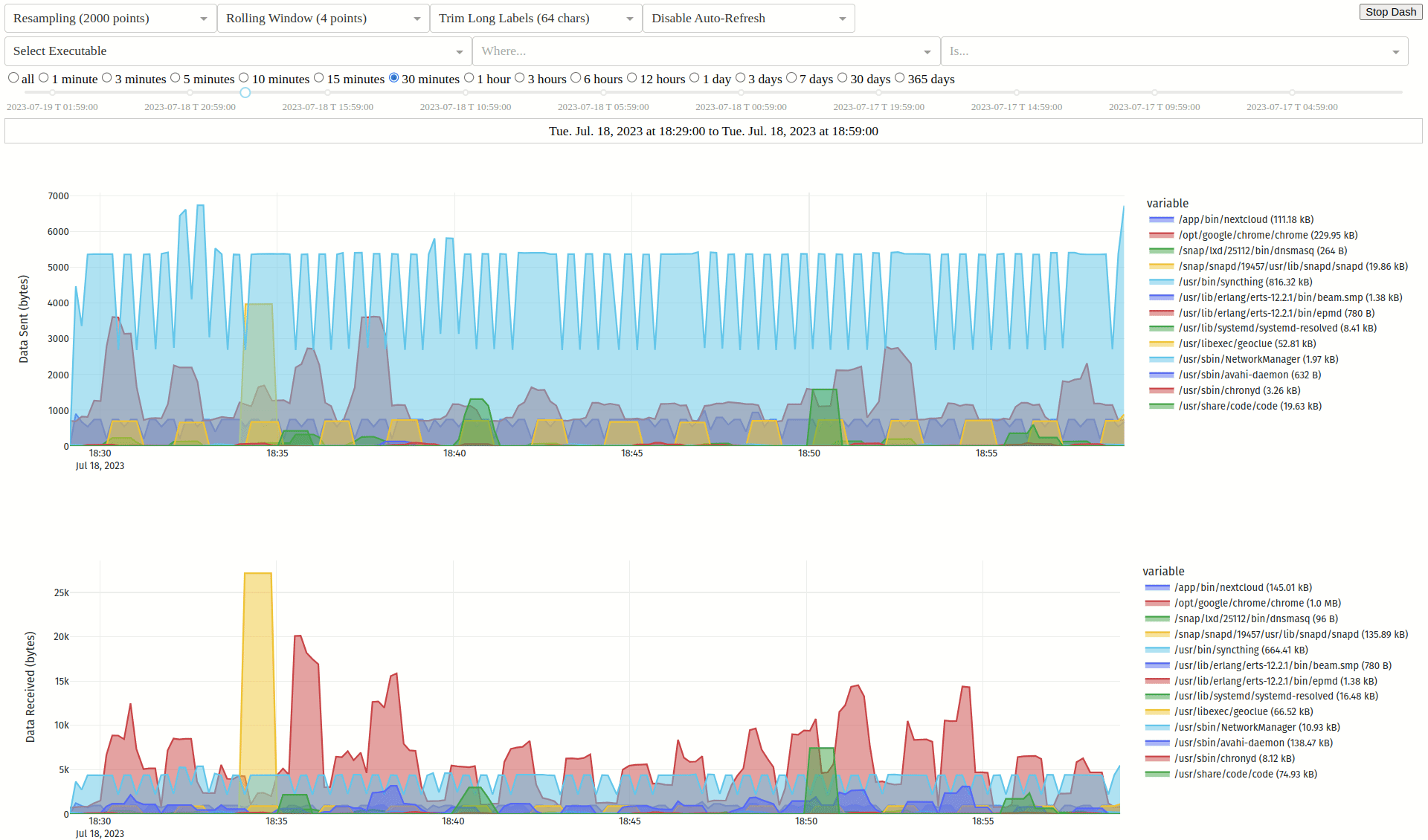 - 📈 Monitors your bandwidth, breaking down traffic by executable, hash, parent, domain, port, or user over time