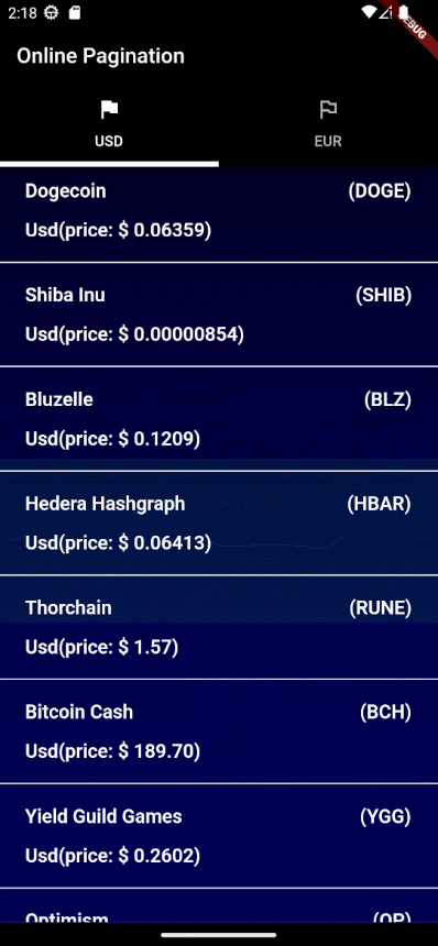 Pagination Flutter Sample Project Using BloC Freezed and Crypto Api