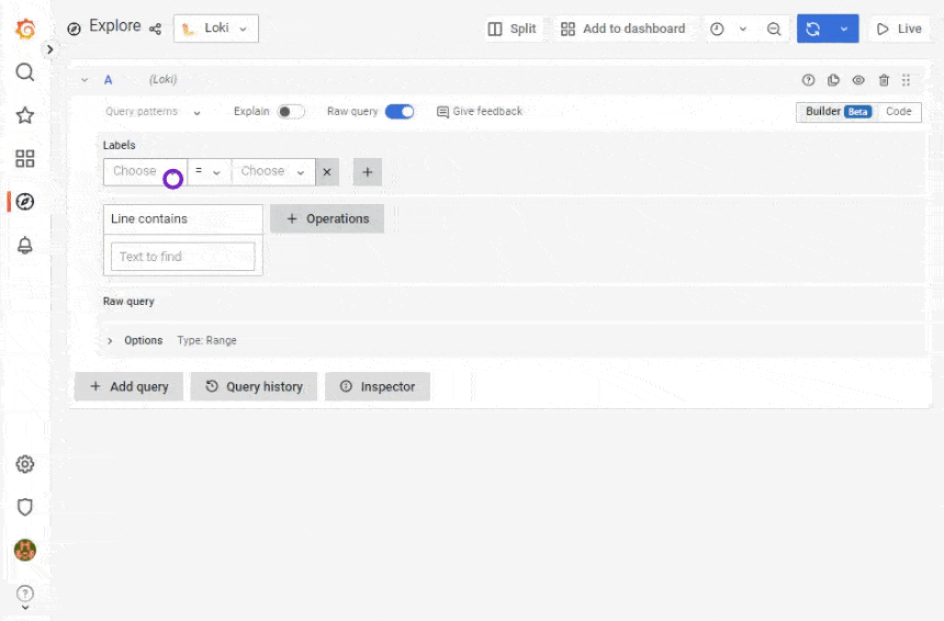 The Grafana Loki datasource can be used to natively browse and query logs and display extracted timeseries