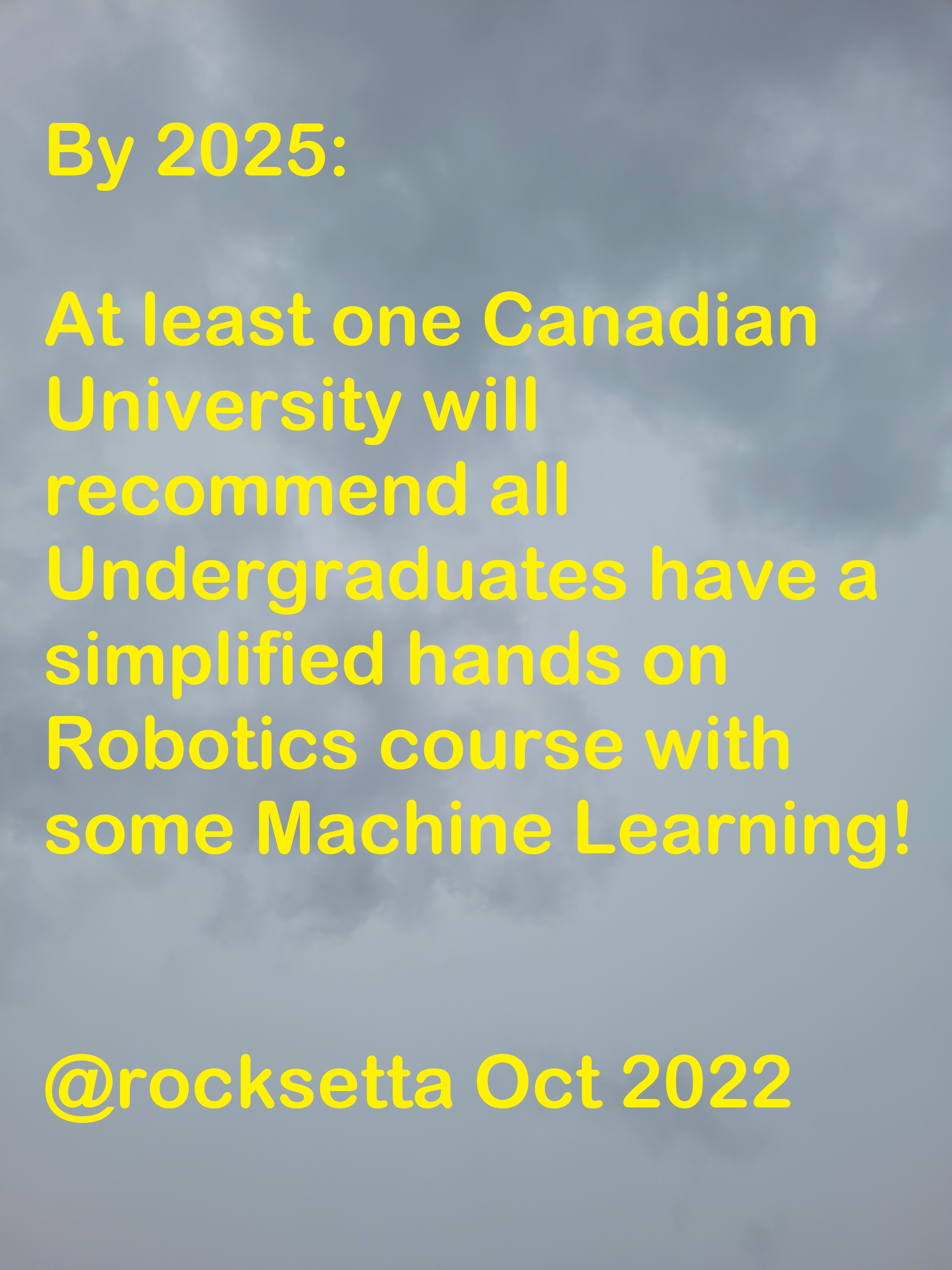Presently working on improving my 7 year student tested Arduino Clone Robotics course old course here to a new robotics and Machine Learning course called maker100 designed for any non-engineering University program and is planned to be ready for Jan 2022.