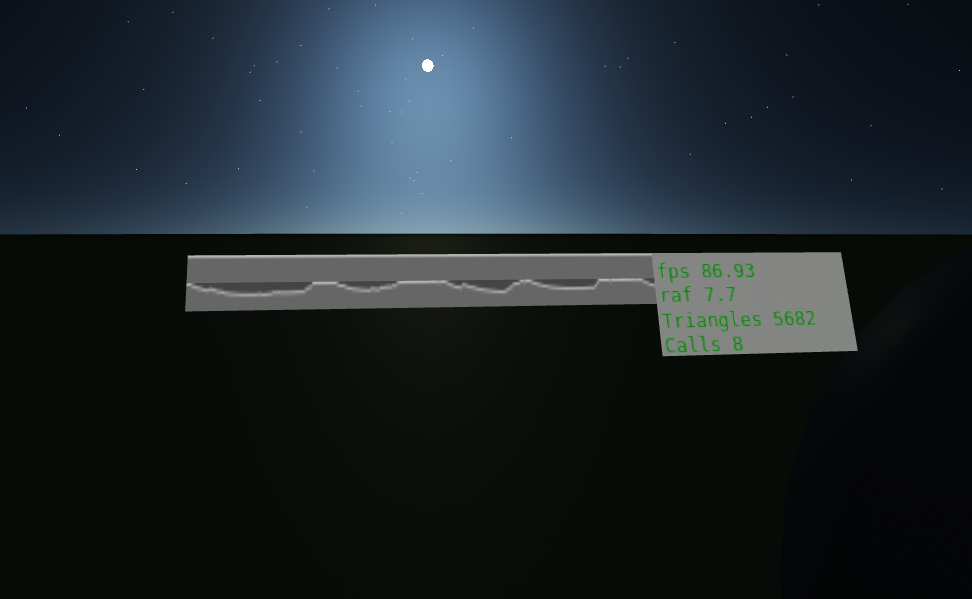 in other words, about 20fps in this scene! I've done prelim testing and been a bit surprised by what factors had the biggest impact on this number, but need to sit down and record them more thoroughly at some point here. In the meantime, feel free to run your own tests by remixing the demo and playing with the features there.