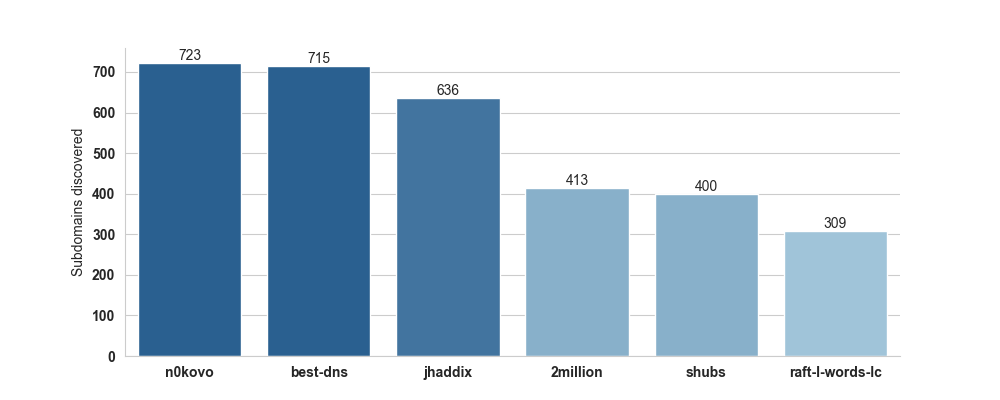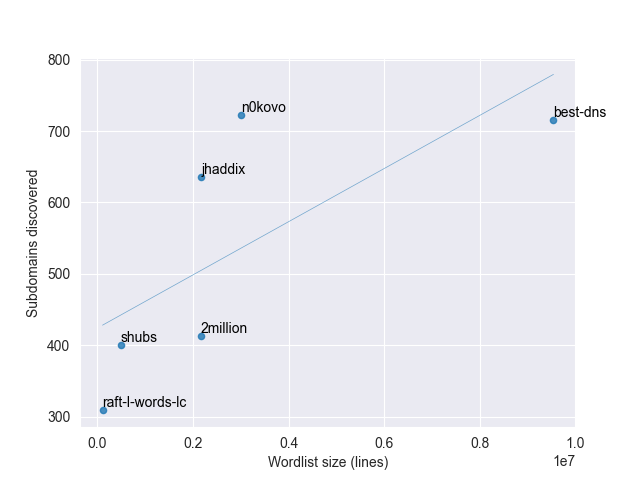 n0kovo_subdomains wordlist An extremely effective subdomain enumeration wordlist of 3,000,000 lines, crafted by harvesting SSL certs from the entire IPv4 space. I have written a lengthy article on the creation of this list, go read it here. Size vs. Hits comparison: