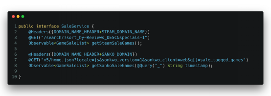 可以看到通过注解就能构建出动态请求连接,并且返回的类型是经过Observable包装后的GameSaleList。Observable是RxJava中最基本的一个类,表明这个对象是可以被观察的。