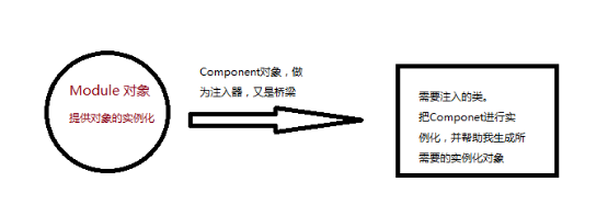 MVP+RxJava+Retorfit已经能很大程度降低我们代码的耦合度了,但Dagger依赖注入是最后一个大杀器,能使我们类与类之间的依赖统一管理。进一步降低耦合度。可以参考示意图理解Dagger:
