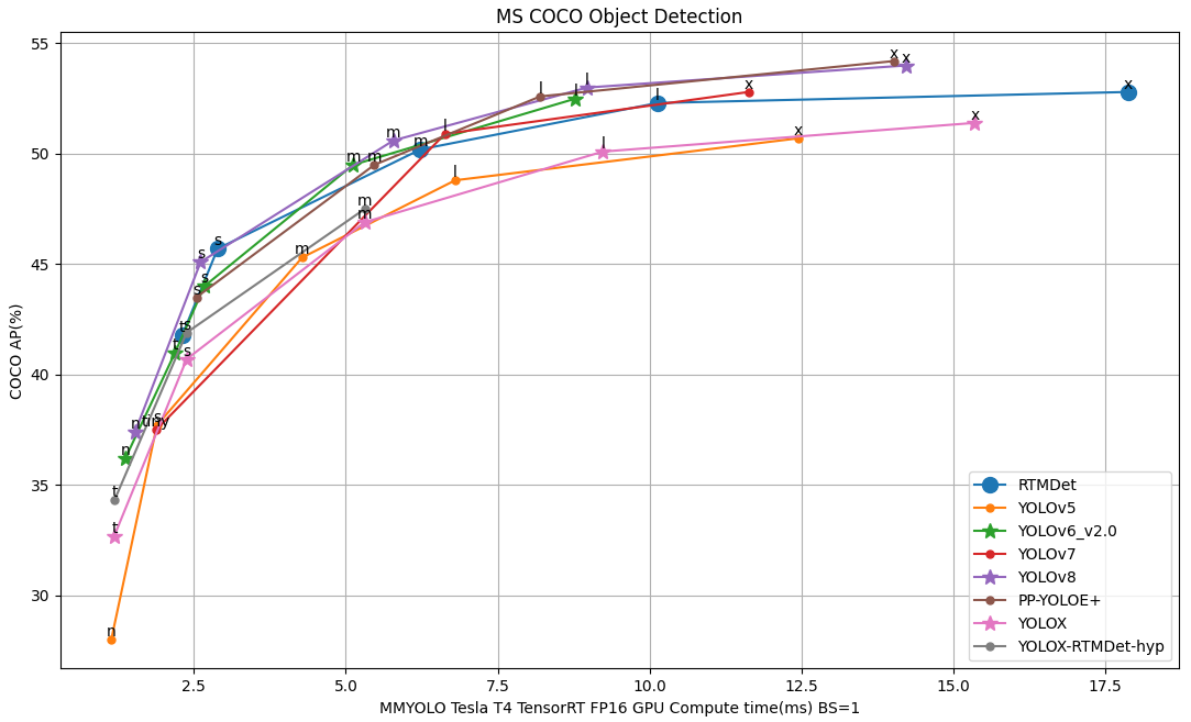 We are excited to announce our latest work on real-time object recognition tasks, RTMDet, a family of fully convolutional single-stage detectors. RTMDet not only achieves the best parameter-accuracy trade-off on object detection from tiny to extra-large model sizes but also obtains new state-of-the-art performance on instance segmentation and rotated object detection tasks. Details can be found in the technical report. Pre-trained models are here.