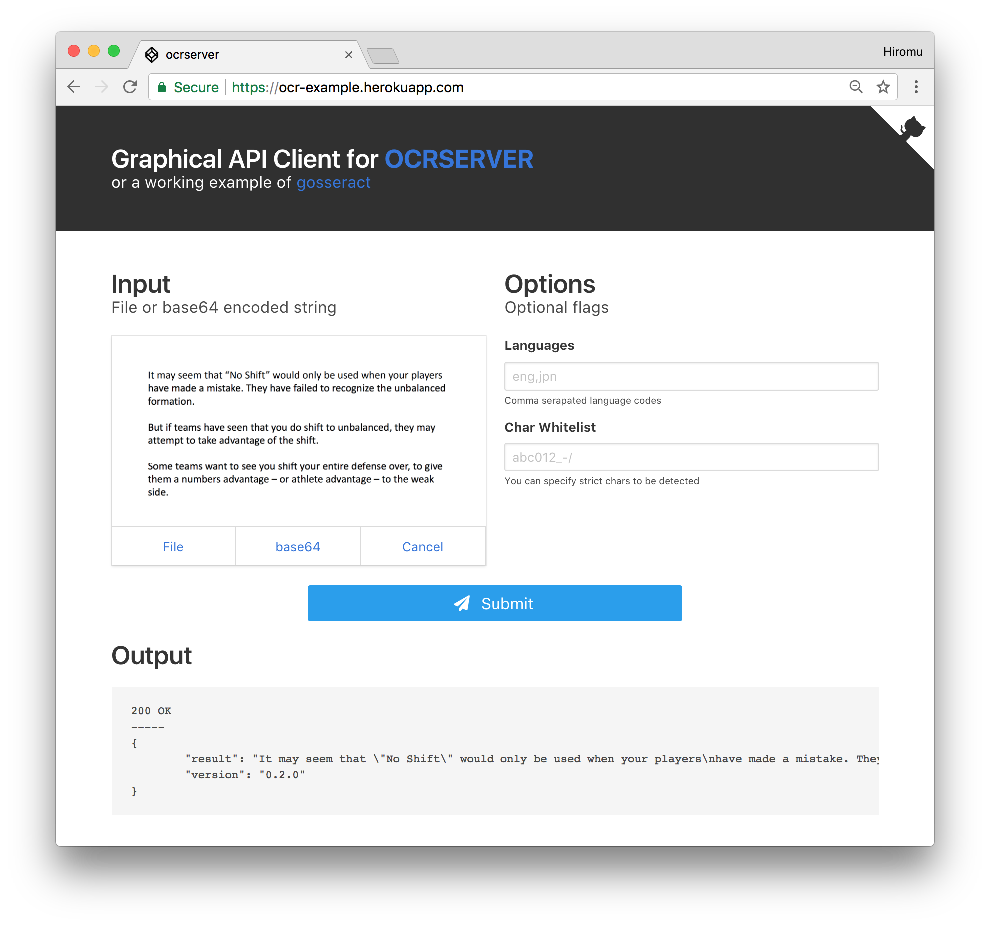 Try now here https://ocr-example.herokuapp.com/, and deploy your own now.