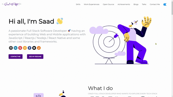 Just change src/portfolio.js to get your personal portfolio. Customize portfolio theme by using your own color scheme globally in the src/_globalColor.scss file. Feel free to use it as-is or personalize it as much as you want.