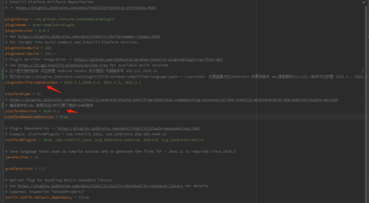 //如果不想调试各种版本兼容的话可以把 build.gradle.kts里的intellij里的updateSinceUntilBuild设置为false
