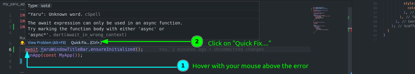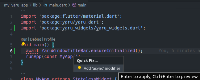 awaitkeyword, and callingYaruWindowTitleBar.ensureInitialized() -