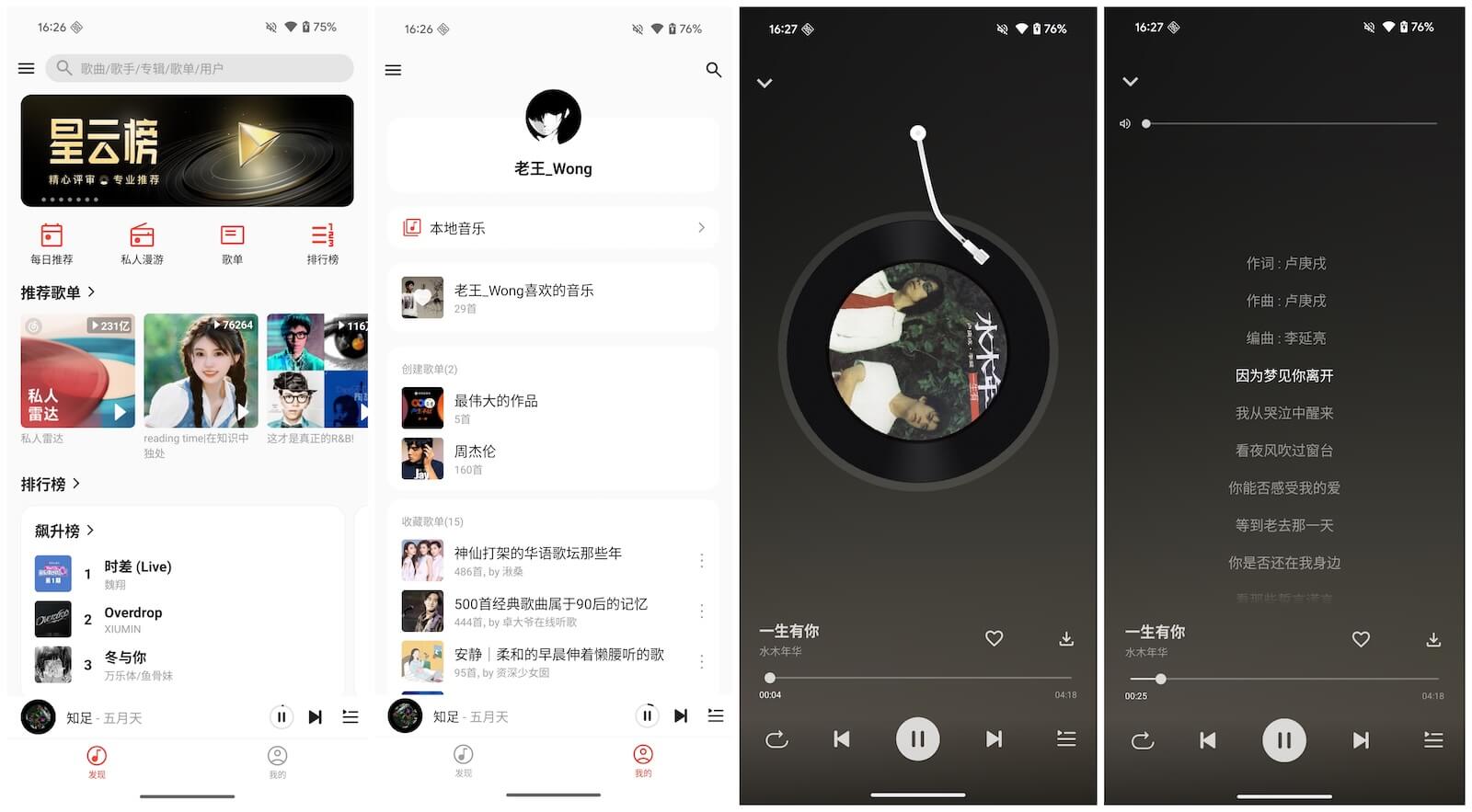 - 增加「每日推荐」、「歌单广场」、「排行榜」、「搜索」等在线功能