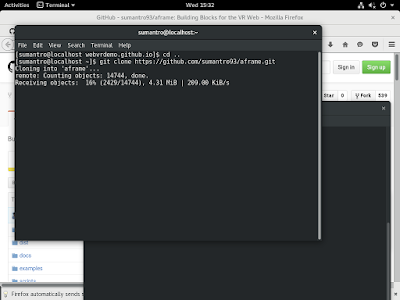 Once you are done , clone the destination where you would like to host your project in my context it will be github.com/webvrdemo . In your case this repo should be empty in the beginning.