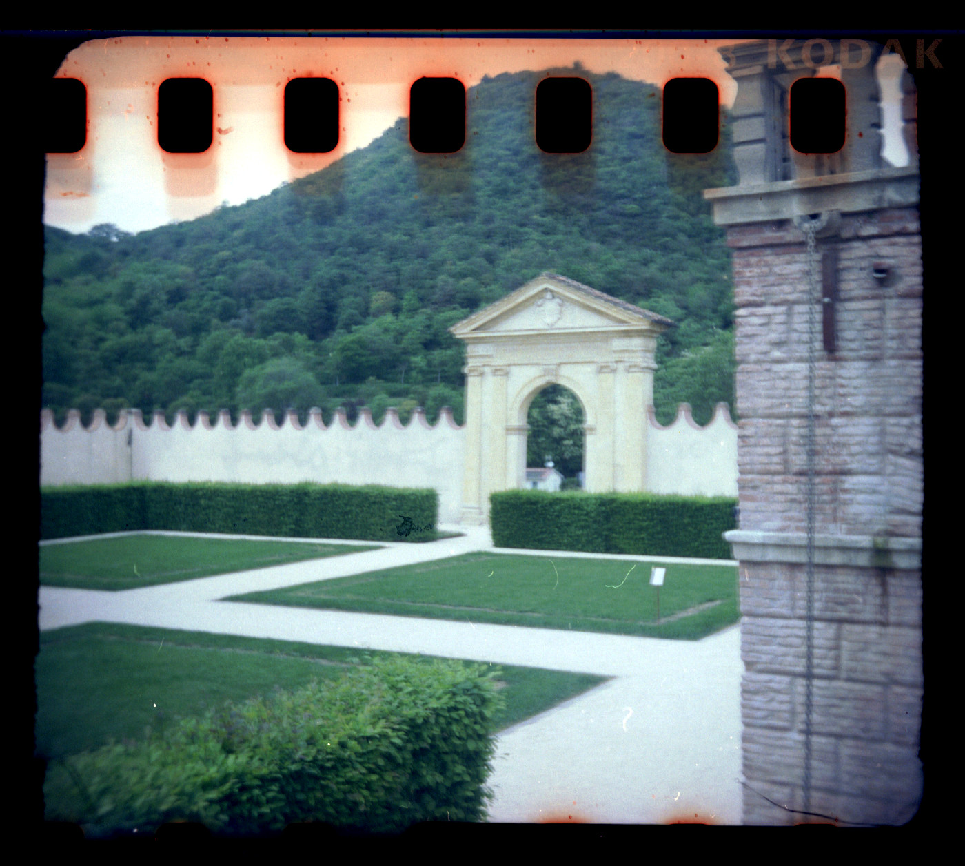 Consider the first roll a test: The frames will not have a consistent placement: some will be more distant, others may be very close. Also note that the 35mm film’s bottom perforations are inside the framing area: your photo will have sprocket holes on top.
